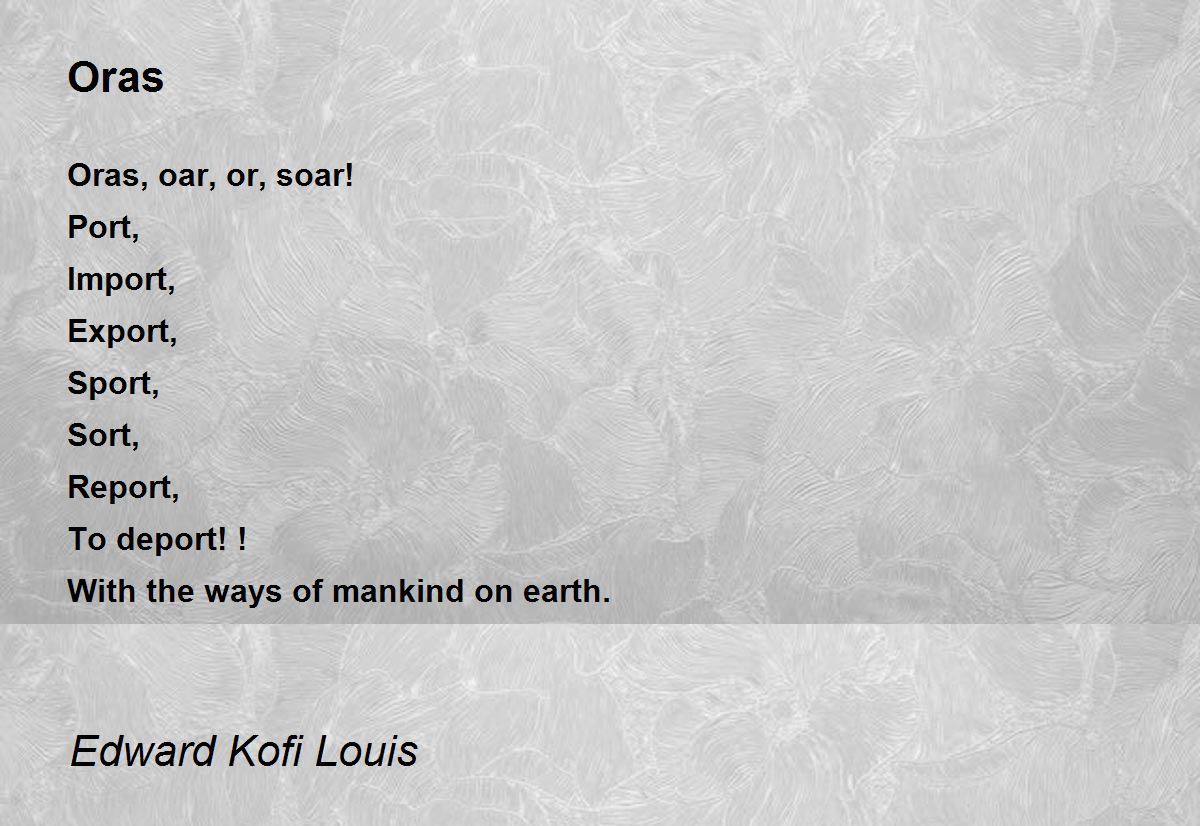 Oras, oar, or, soar! Port, Import, Export, Sport, Sort, Report, To deport! ! With the ways of mankind on earth.