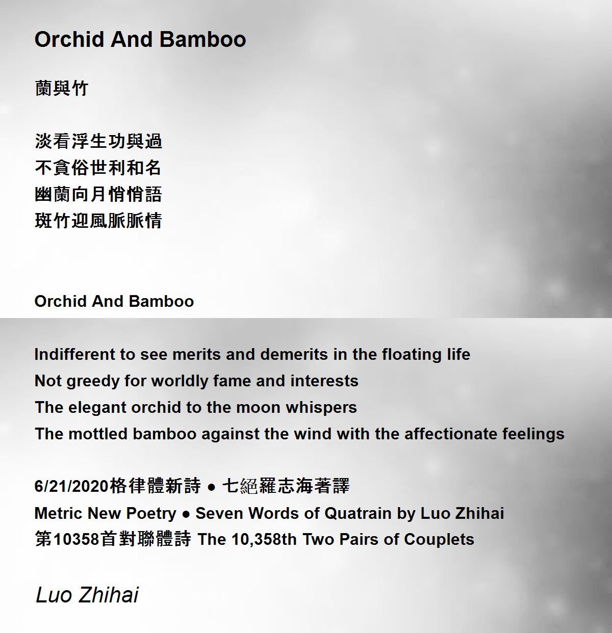 Metric New Poetry ● Seven Words of Quatrain by Luo Zhihai