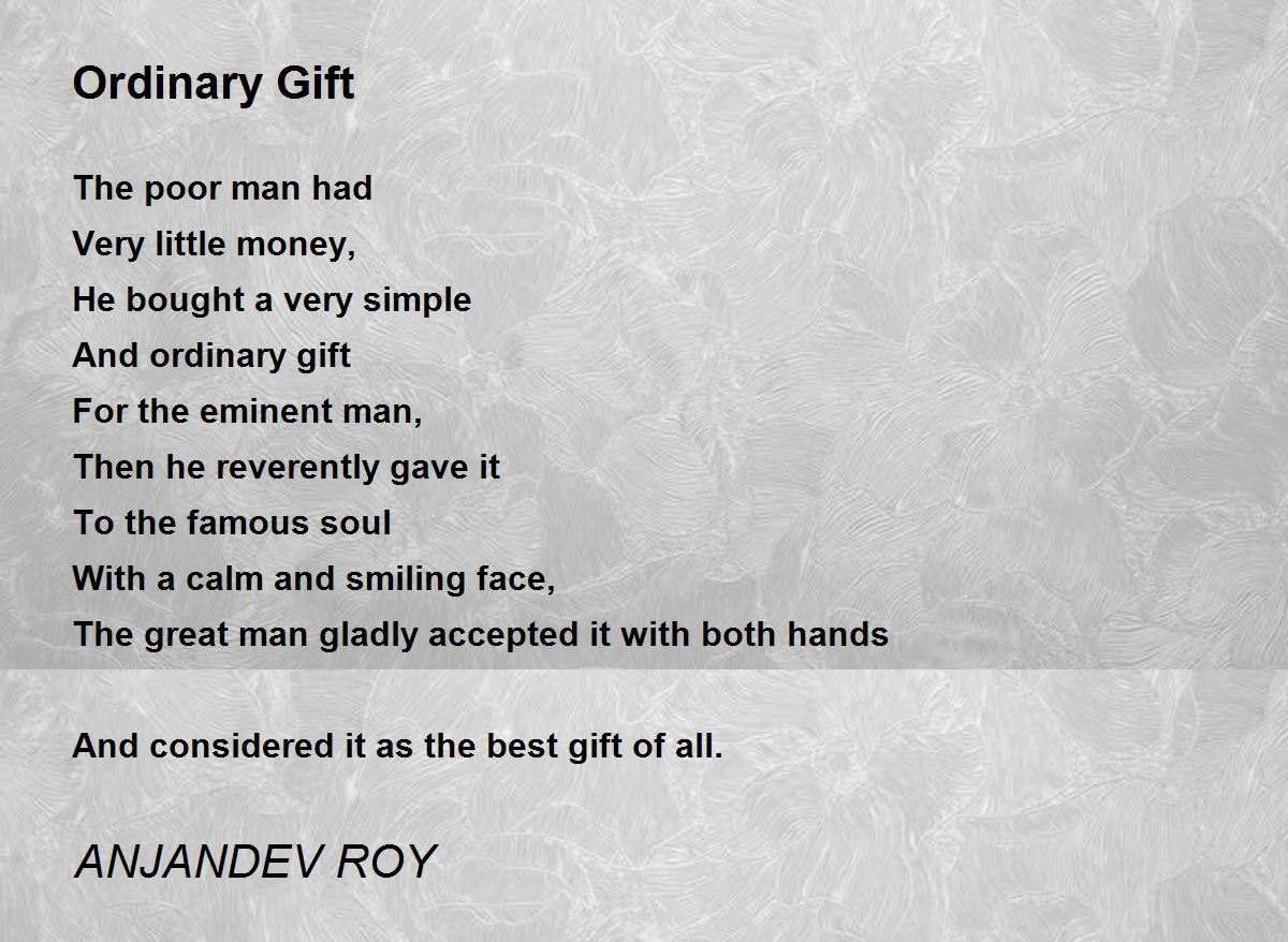 Greatness of both, the one who gave ordinary gift to the great man and the other who gleefully accepted it, portrayed in magnanimous way. Thanks for sharing.10 points.