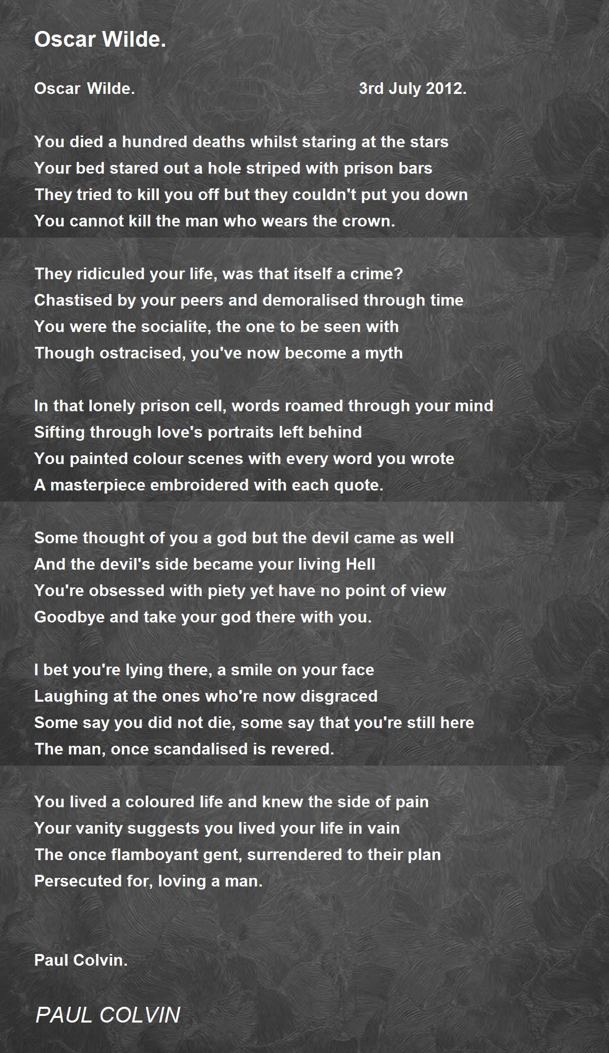Oscar Wilde. 3rd July 2012.