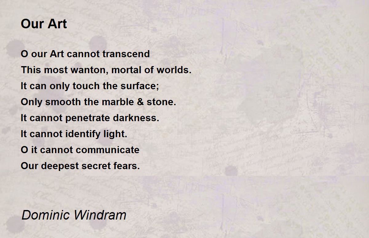 It cannot penetrate darkness. It cannot identify light. so sad to see that our art cannot conquer evil.......... a real statement in the present context. thank u for your observation and philosophy. tony