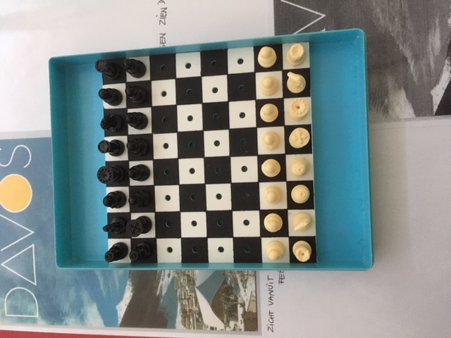 The photograph, a Mini Chess Play was taken in DAVOS 2018, Swiss, by Sylvia Frances Chan. Most time for in the automobile.