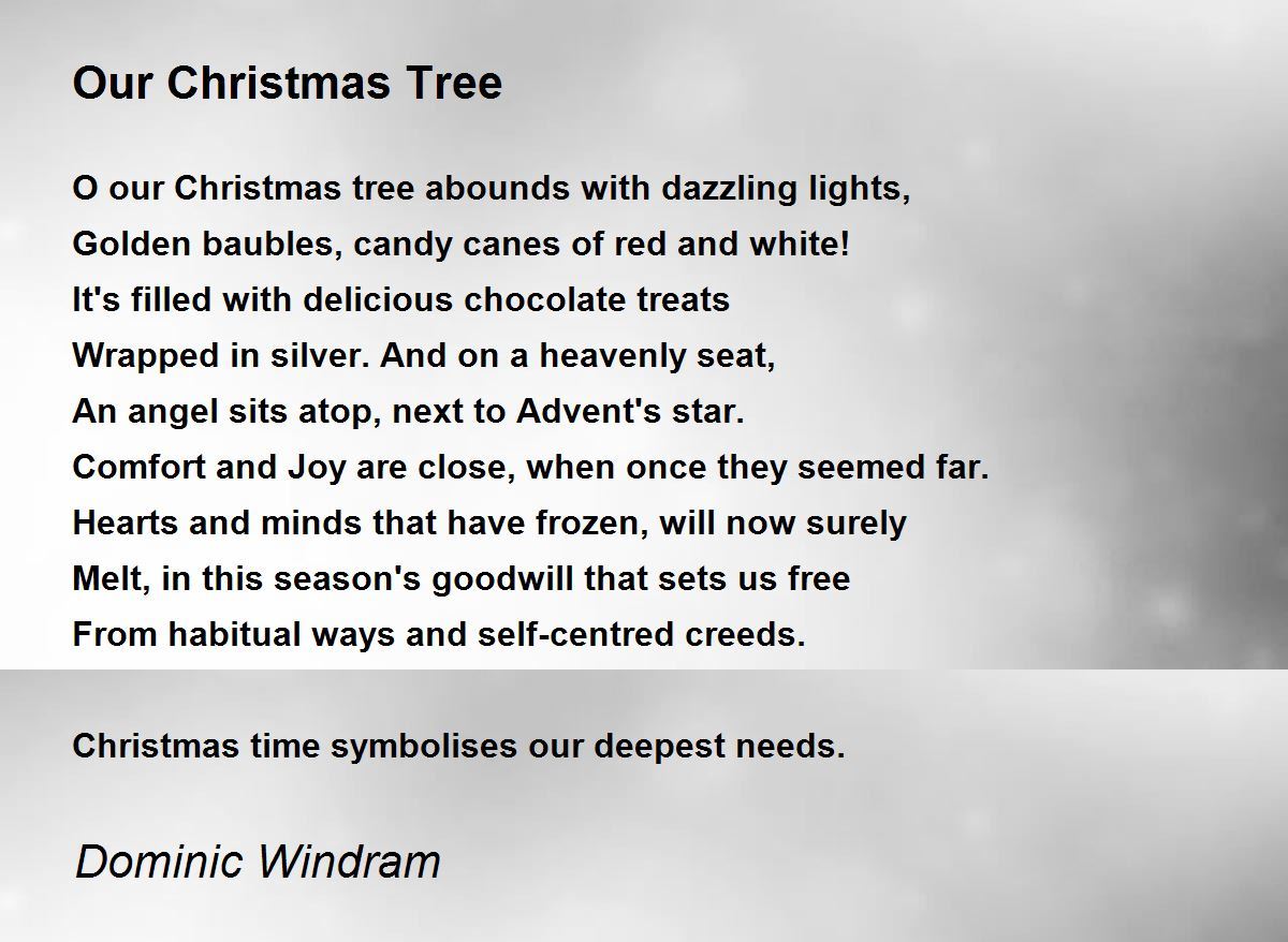 A thoughtful poem of Christmas happiness. I hope Christmas generosity extends to those without. Christmas tree or indeed a home and that you give something to the poor and homeless.