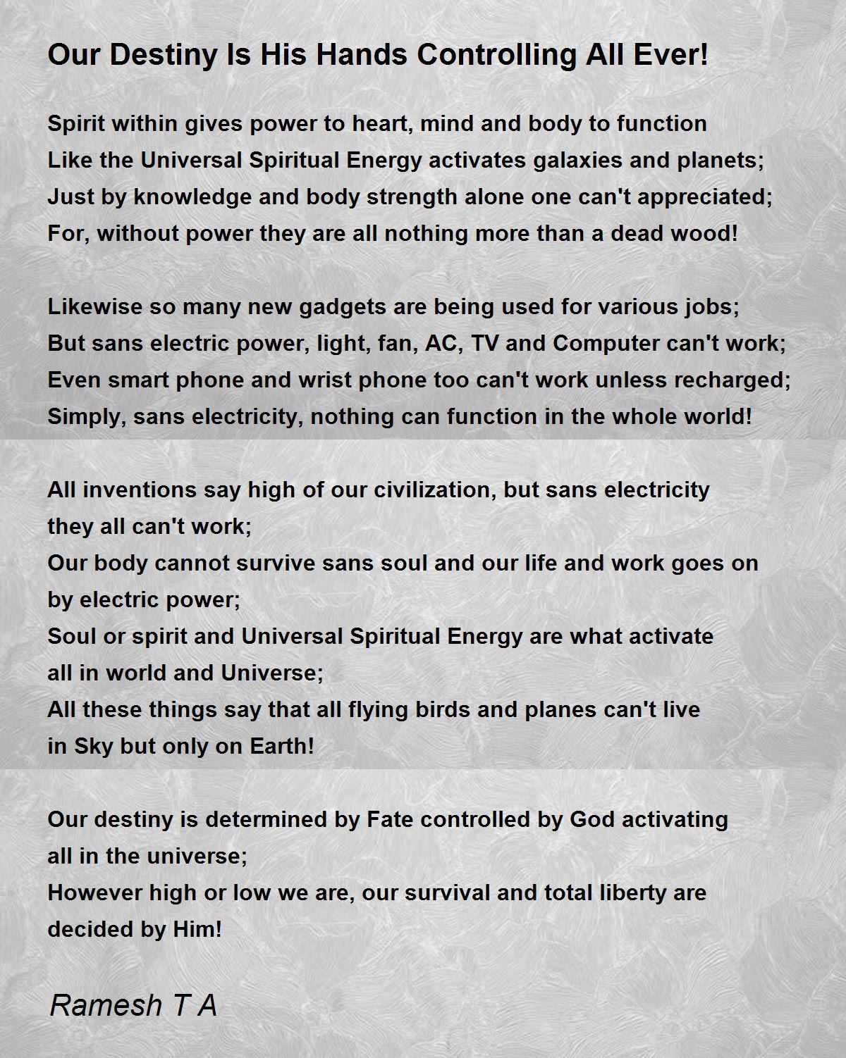 Our destiny is determined by Fate controlled by God activating all in the universe;