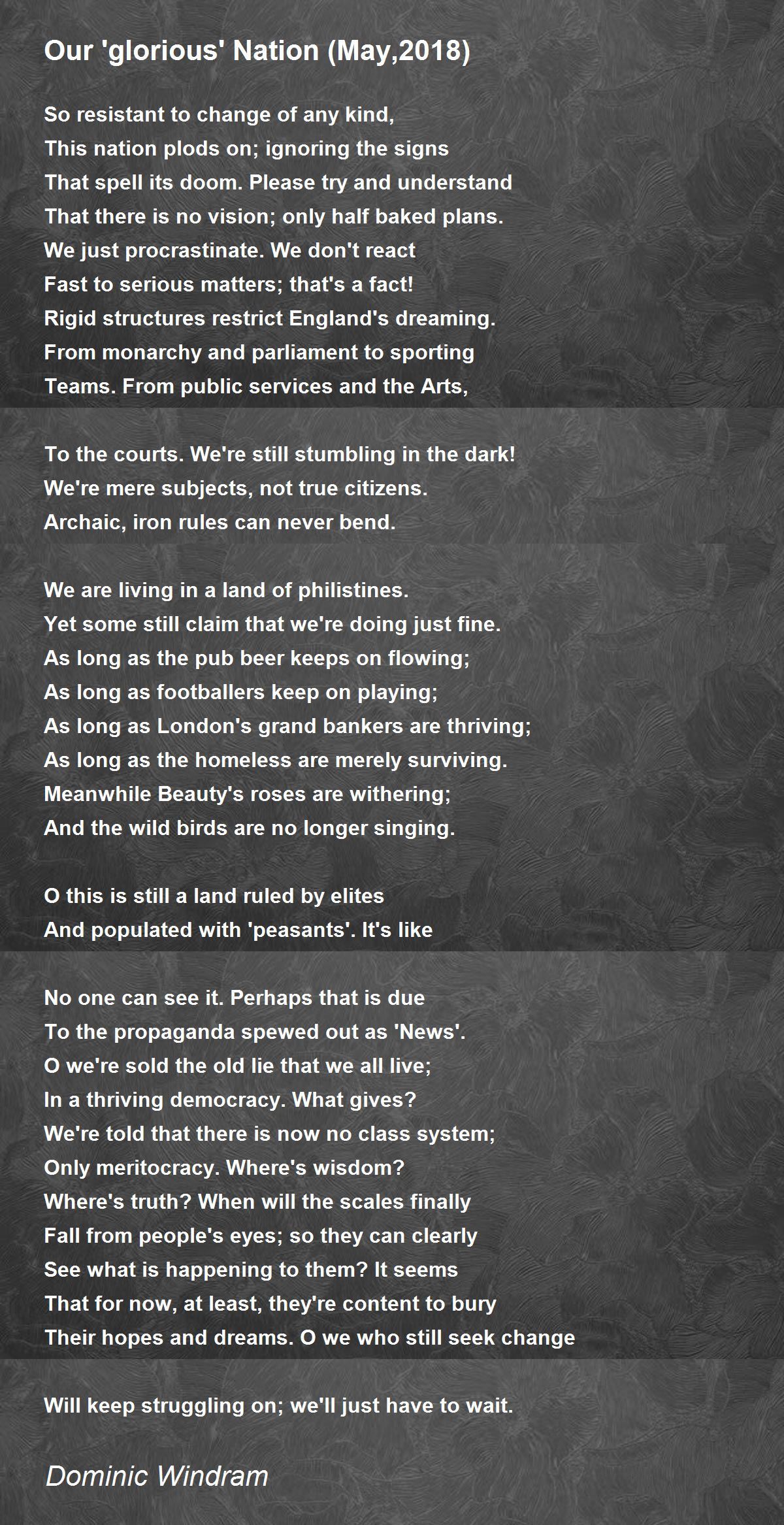 A well written political poem in verse.......10+++