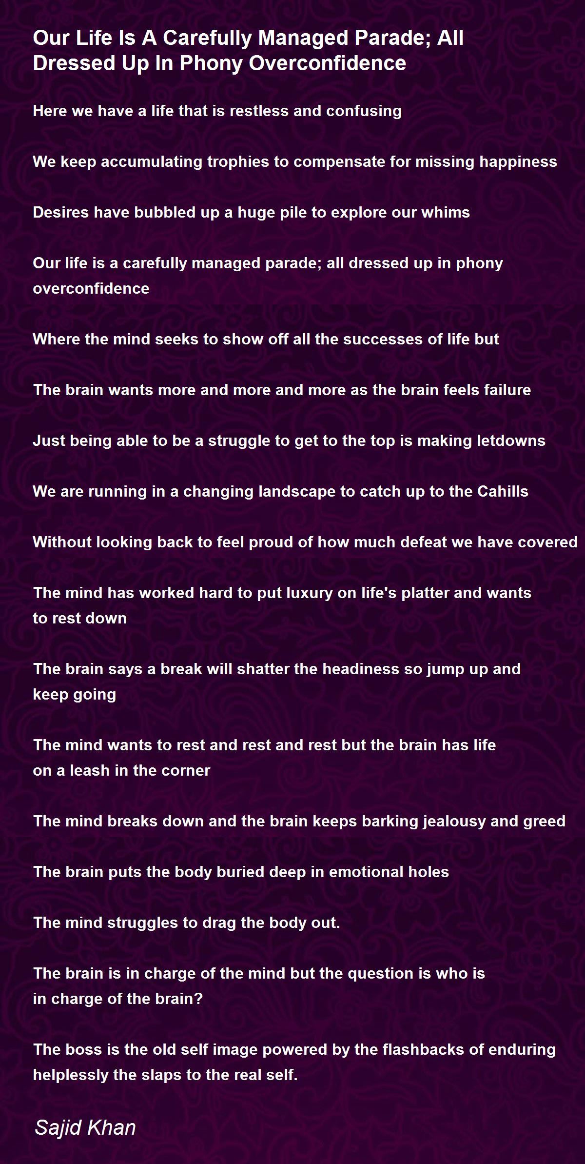 Our life is a carefully managed parade; all dressed up in phony overconfidence