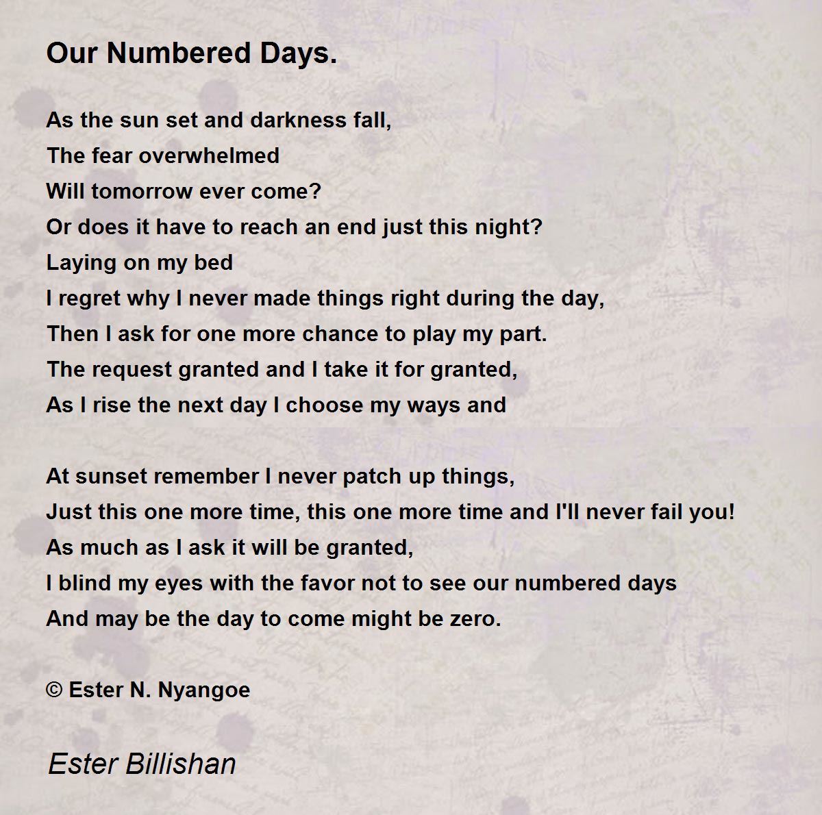 I blind my eyes with the favor not to see our numbered days