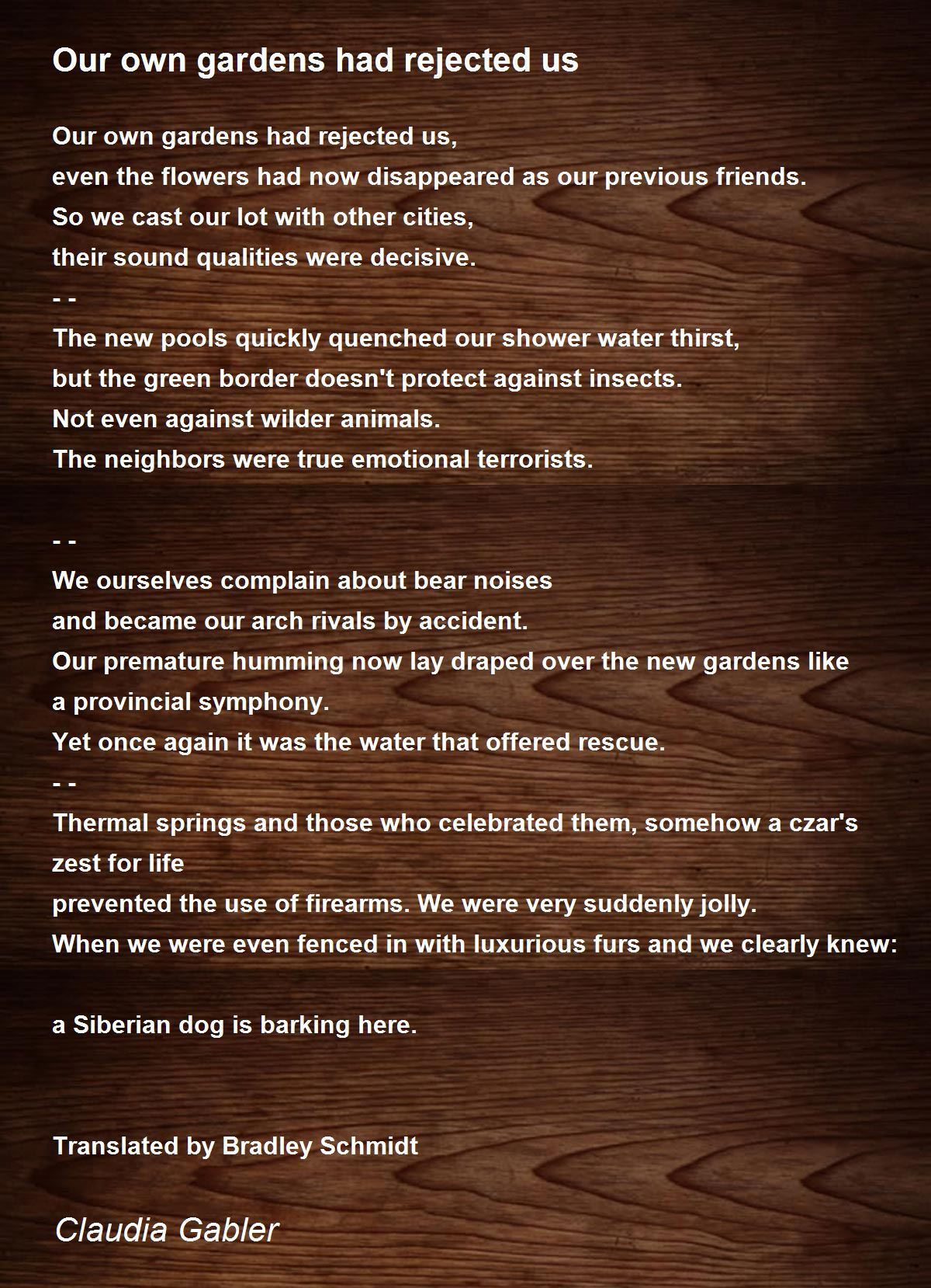 Our own gardens had rejected us,