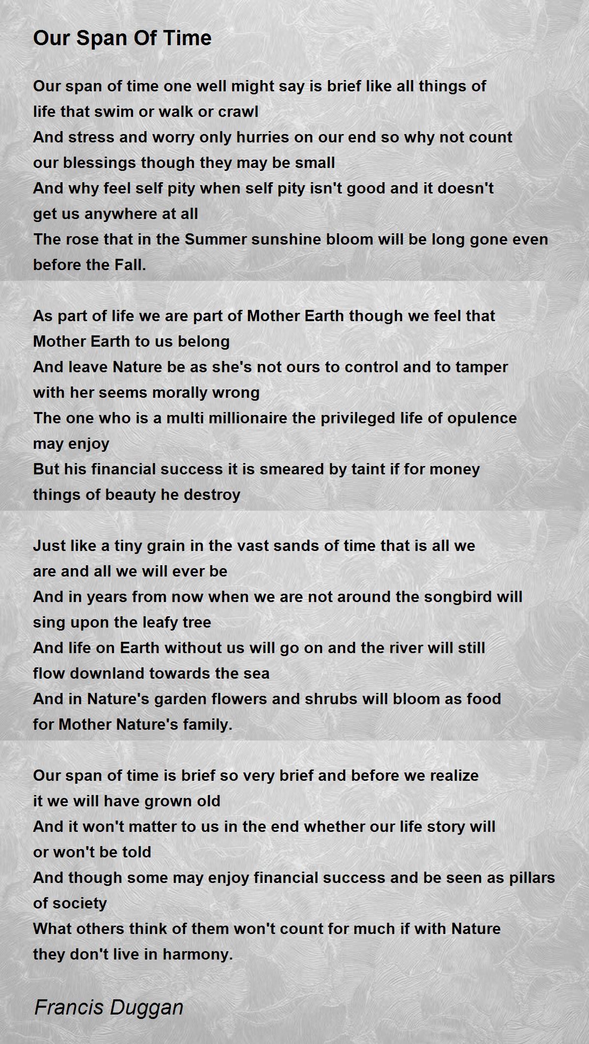 Our span of time one well might say is brief like all things of life that swim or walk or crawl