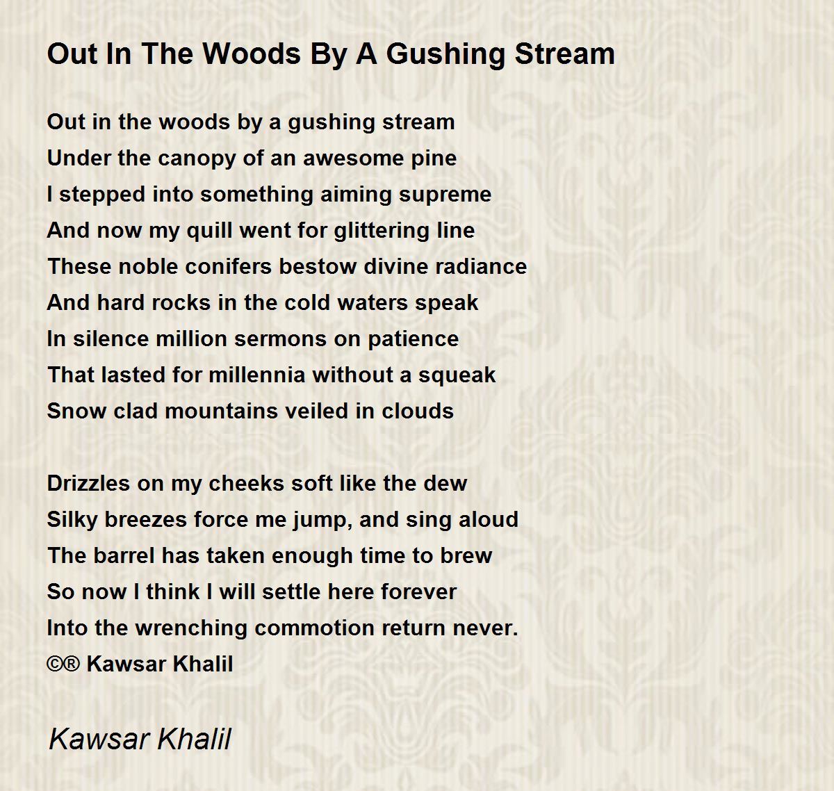Out in the woods by a gushing stream