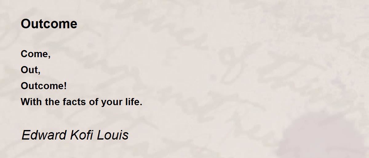 Come, Out, Outcome! With the facts of your life.