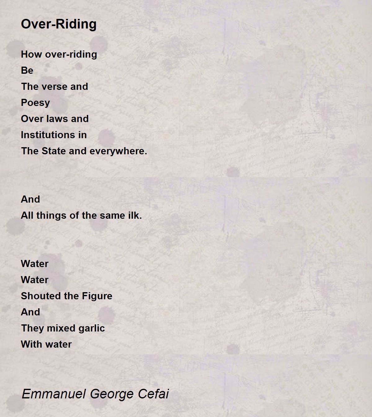 Galic with water! ! Thanks for sharing this poem with us.