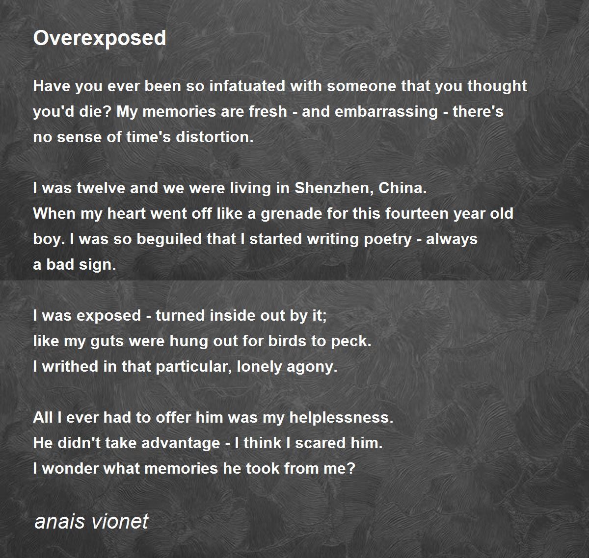When my heart went off like a grenade for this fourteen year old boy. I was so beguiled that I started writing poetry - always a bad sign.