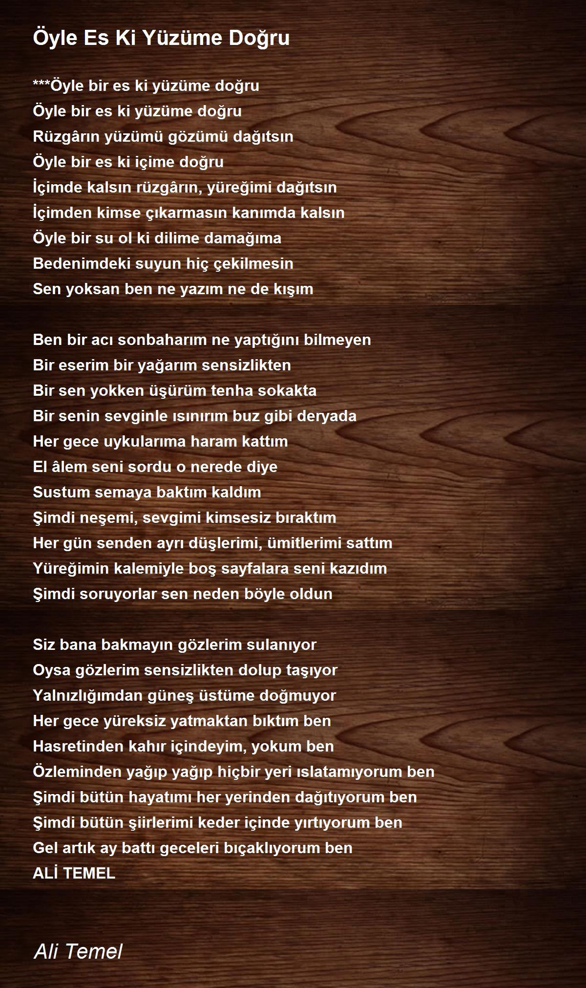 ***Öyle bir es ki yüzüme doğru