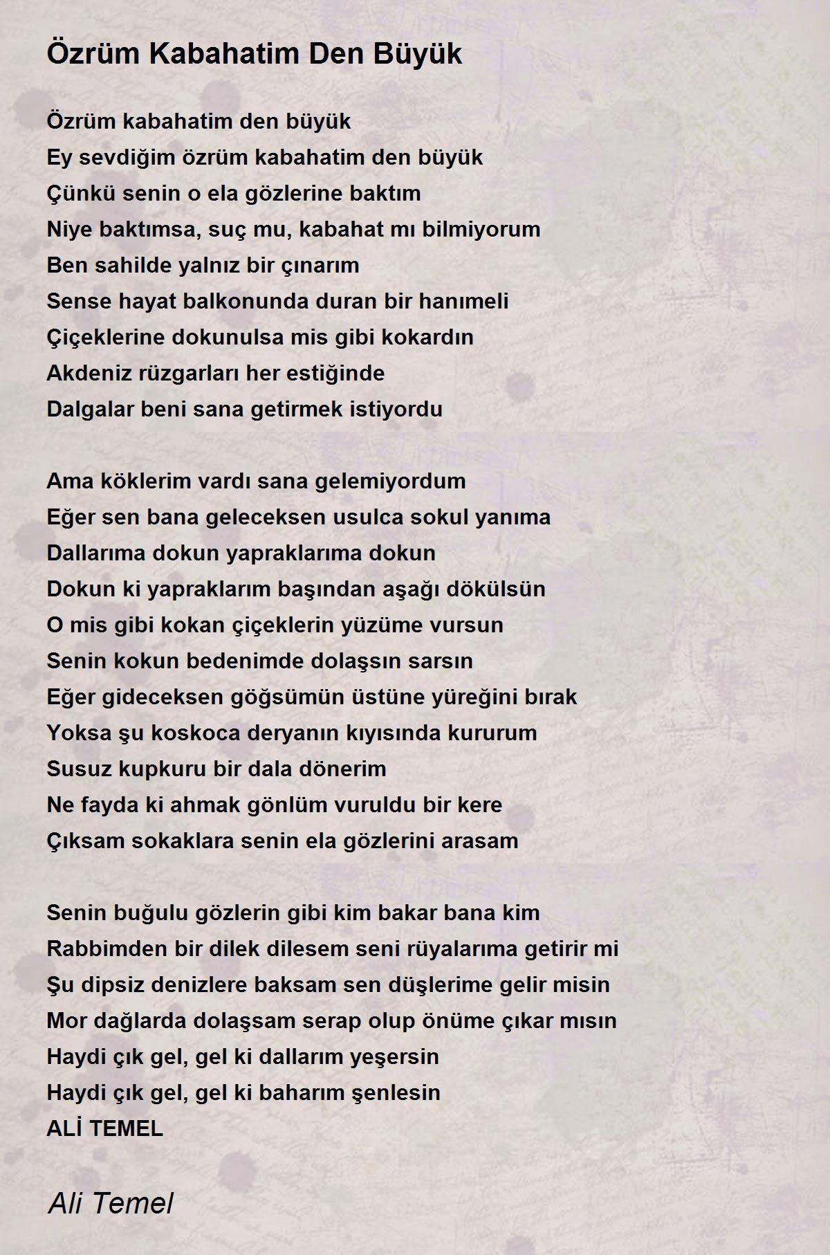 Ey sevdiğim özrüm kabahatim den büyük