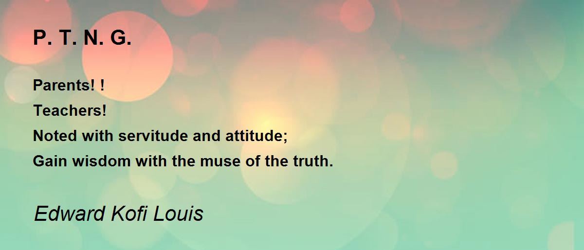 Parents! ! Teachers! Noted with servitude and attitude; Gain wisdom with the muse of the truth.