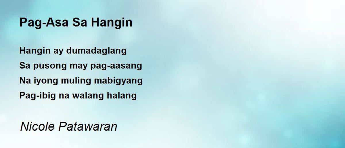 Hangin ay dumadaglang Sa pusong may pag-aasang Na iyong muling mabigyang Pag-ibig na walang halang