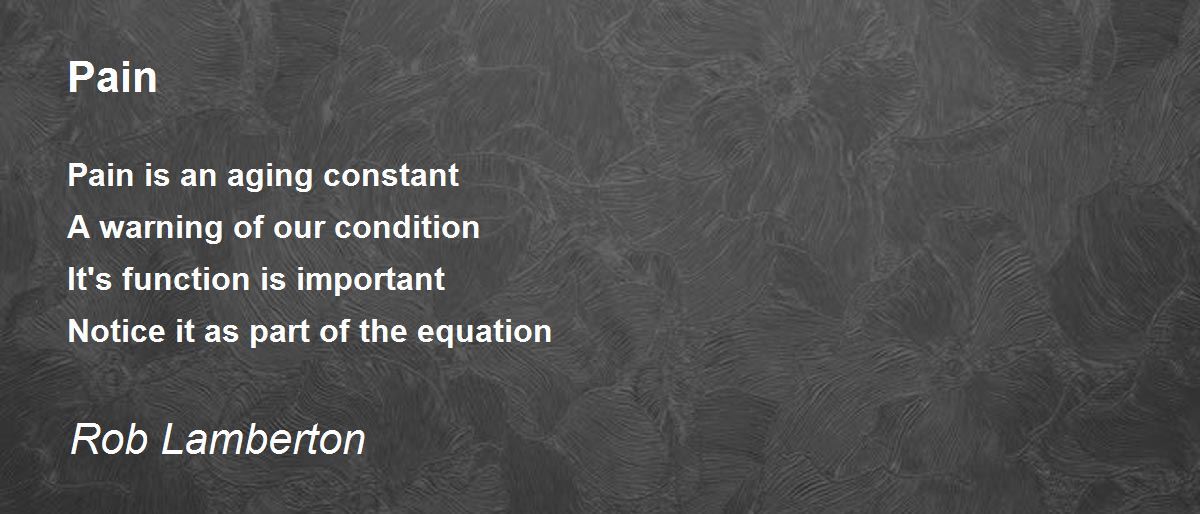 Pain is an aging constant A warning of our condition It's function is important Notice it as part of the equation