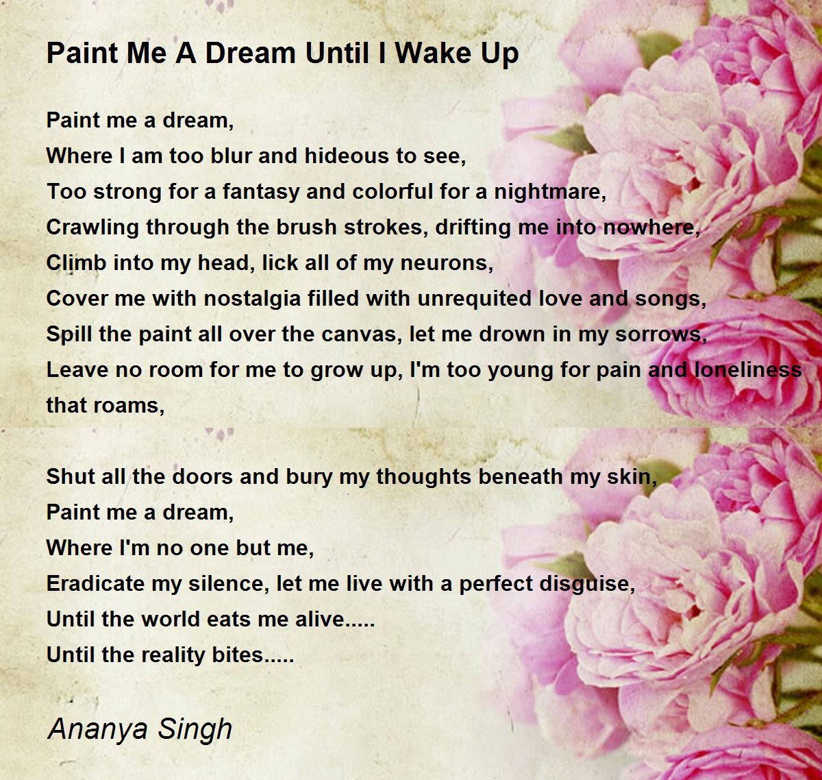 Spill the paint all over the canvas, let me drown in my sorrows,