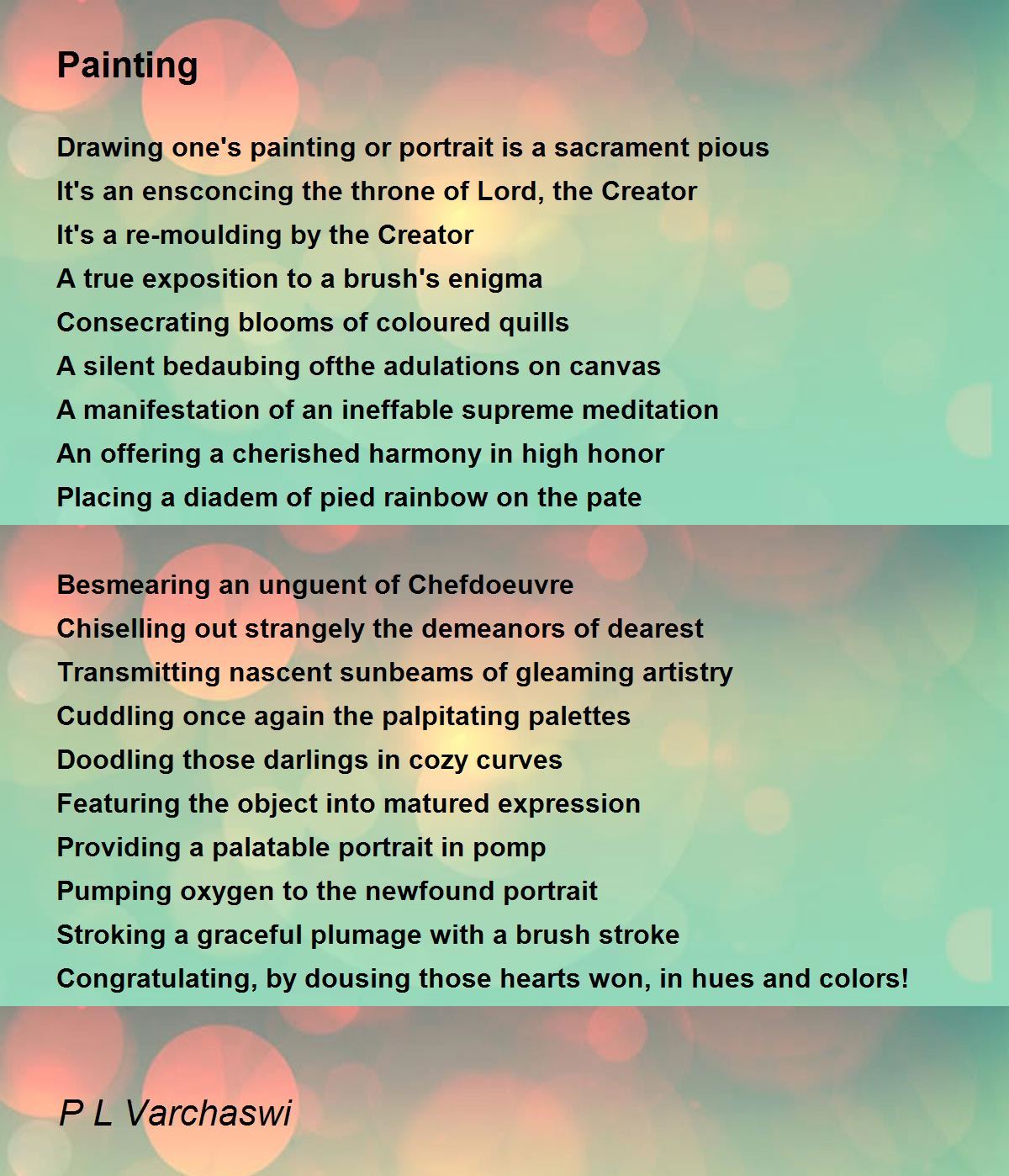 Placing a diadem of pied rainbow on the pate