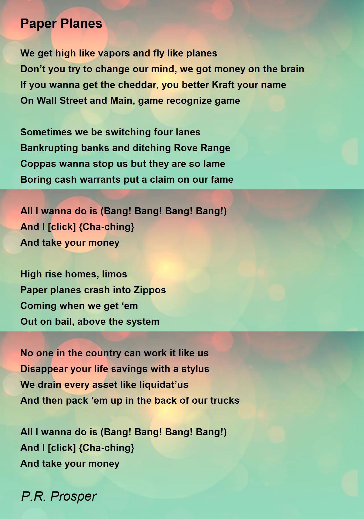 And I [click] {Cha-ching}