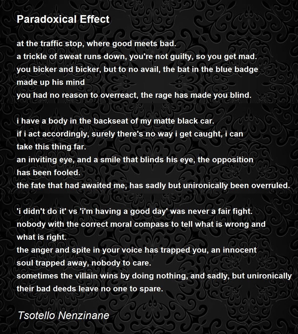 i have a body in the backseat of my matte black car.