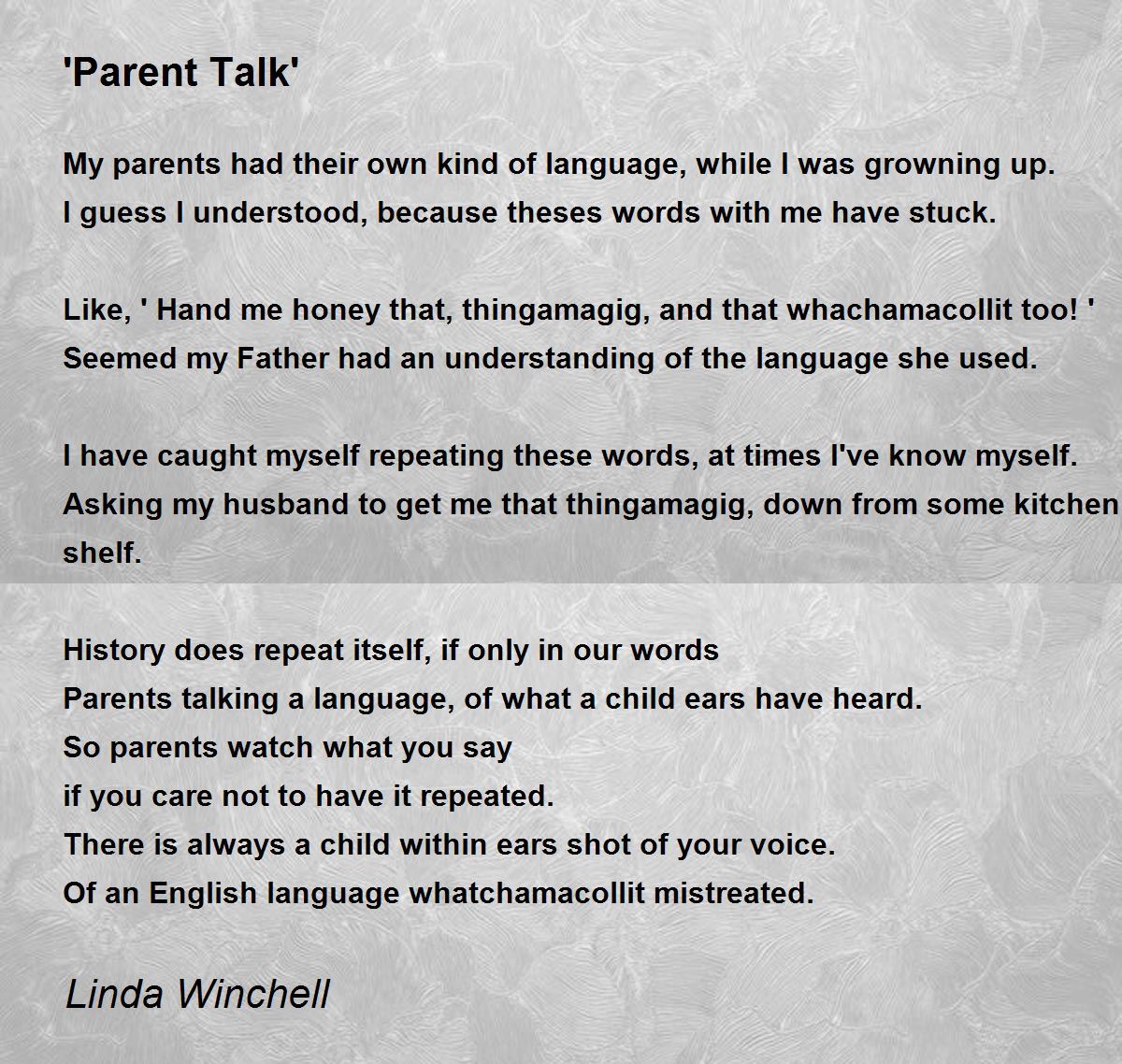 Like, ' Hand me honey that, thingamagig, and that whachamacollit too! '