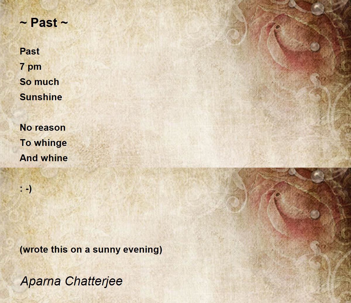 Past 7 pm So much Sunshine No reason To whinge And whine : -) (wrote this on a sunny evening)