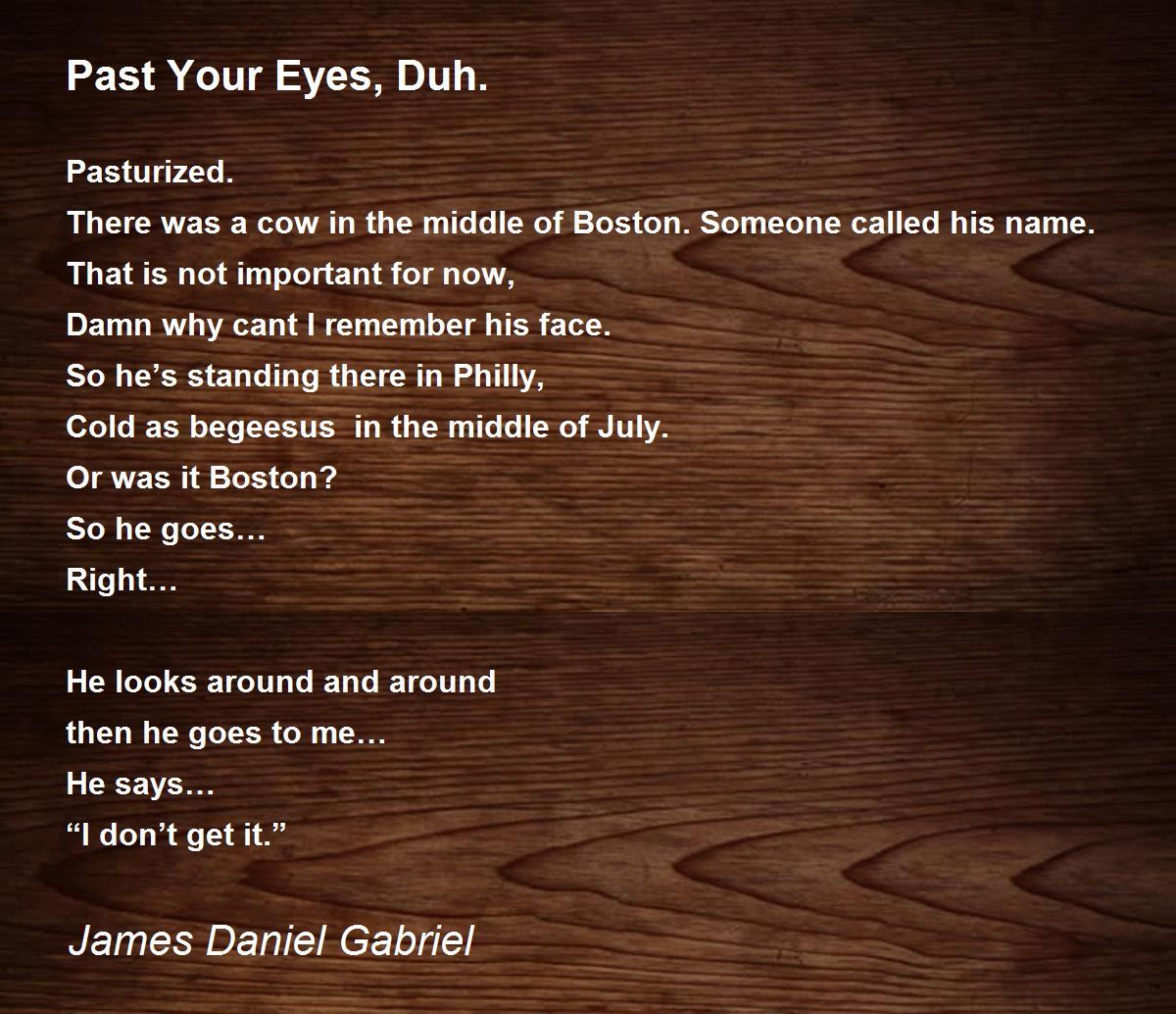 hey that sounds really funny u should write more like that.hey i am a poet writter i write maybe u should check it out check me by Jacqueline Esquivel.