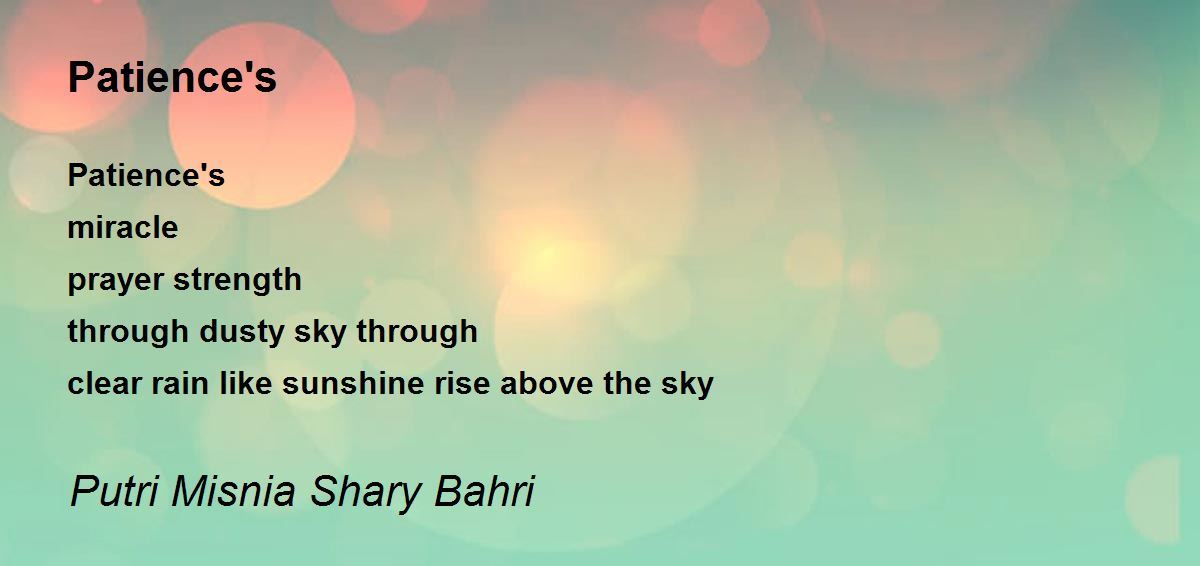 Patience's miracle prayer strength through dusty sky through clear rain like sunshine rise above the sky