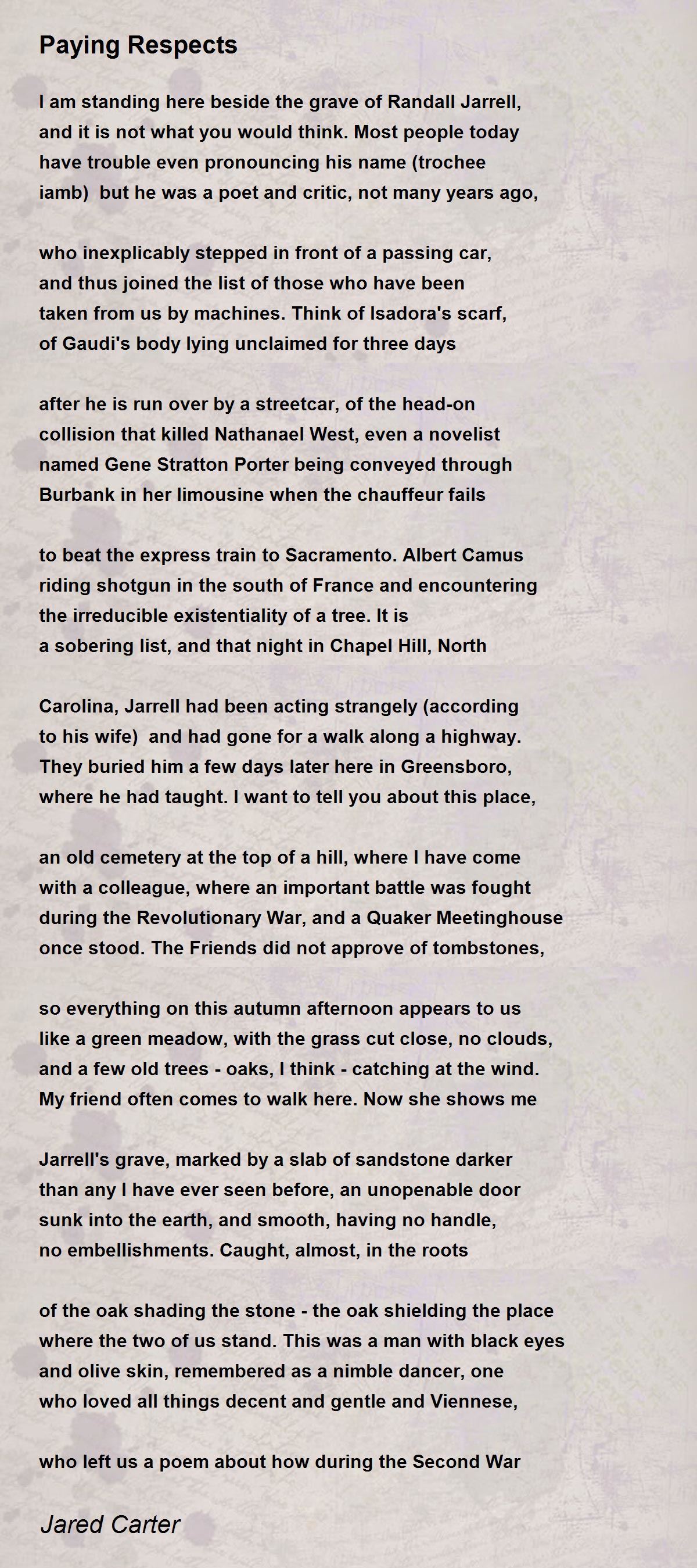 Randall. Iamb, Jarrell. Vanished, now, through this door,