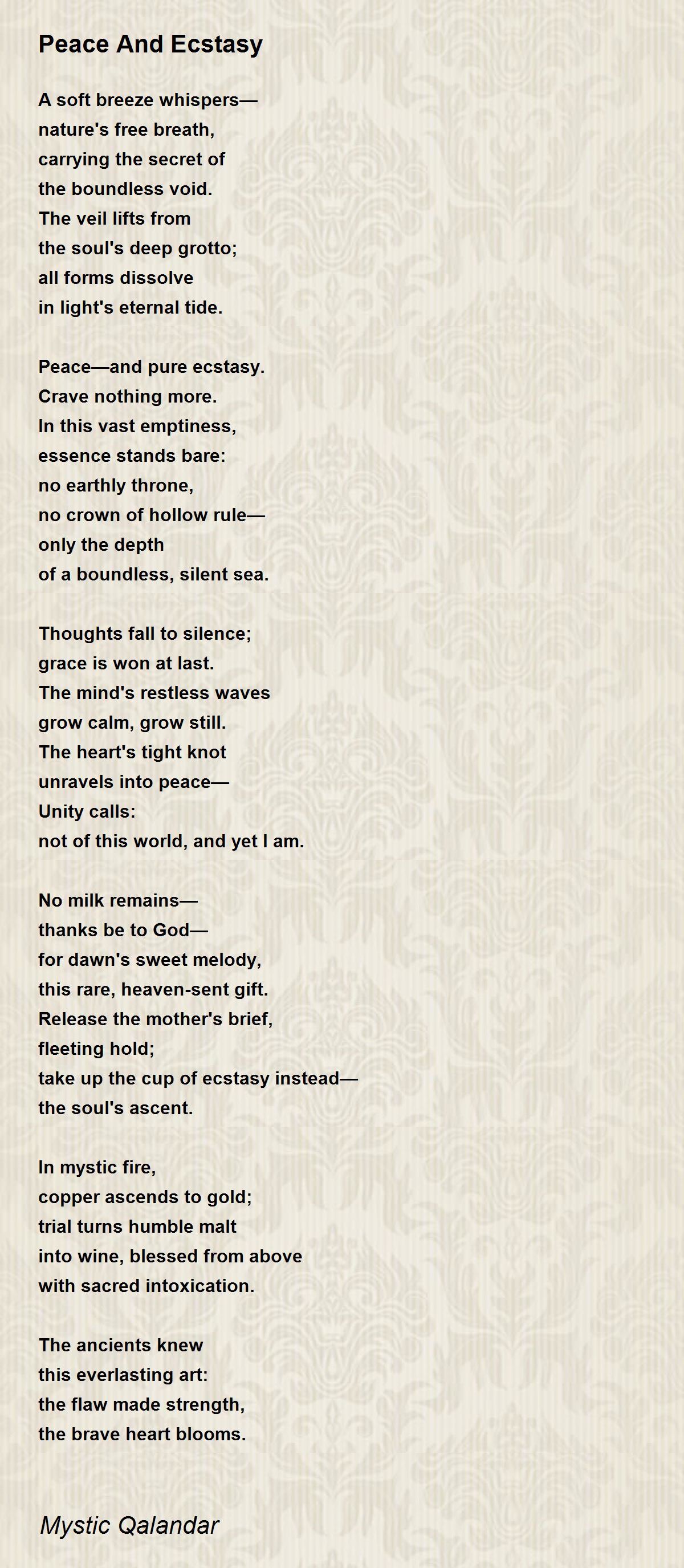 Peace—and pure ecstasy.