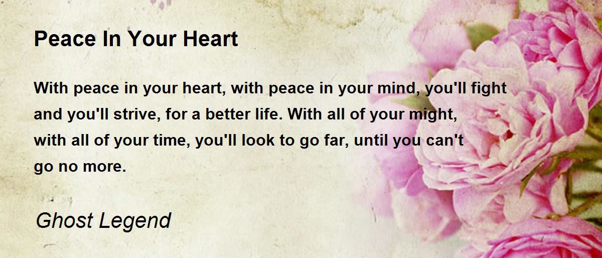 With peace in your heart, with peace in your mind, you'll fight and you'll strive, for a better life. With all of your might, with all of your time, you'll look to go far, until you can't go no more.