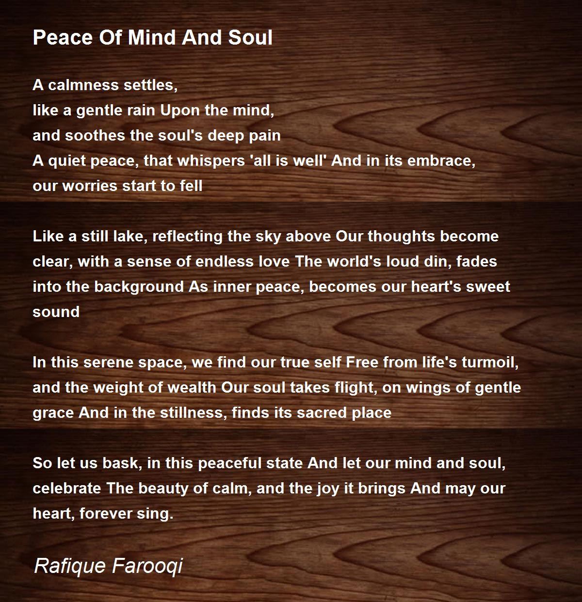 So let us bask, in this peaceful state And let our mind and soul, celebrate The beauty of calm, and the joy it brings And may our heart, forever sing.
