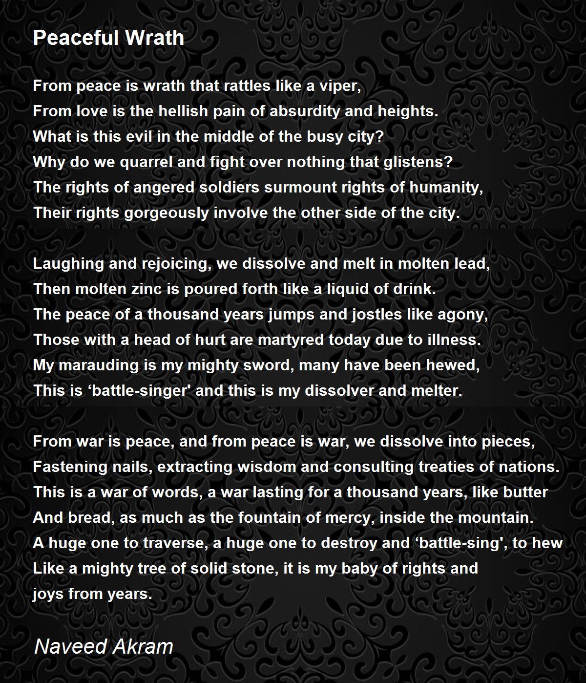 From peace is wrath that rattles like a viper,