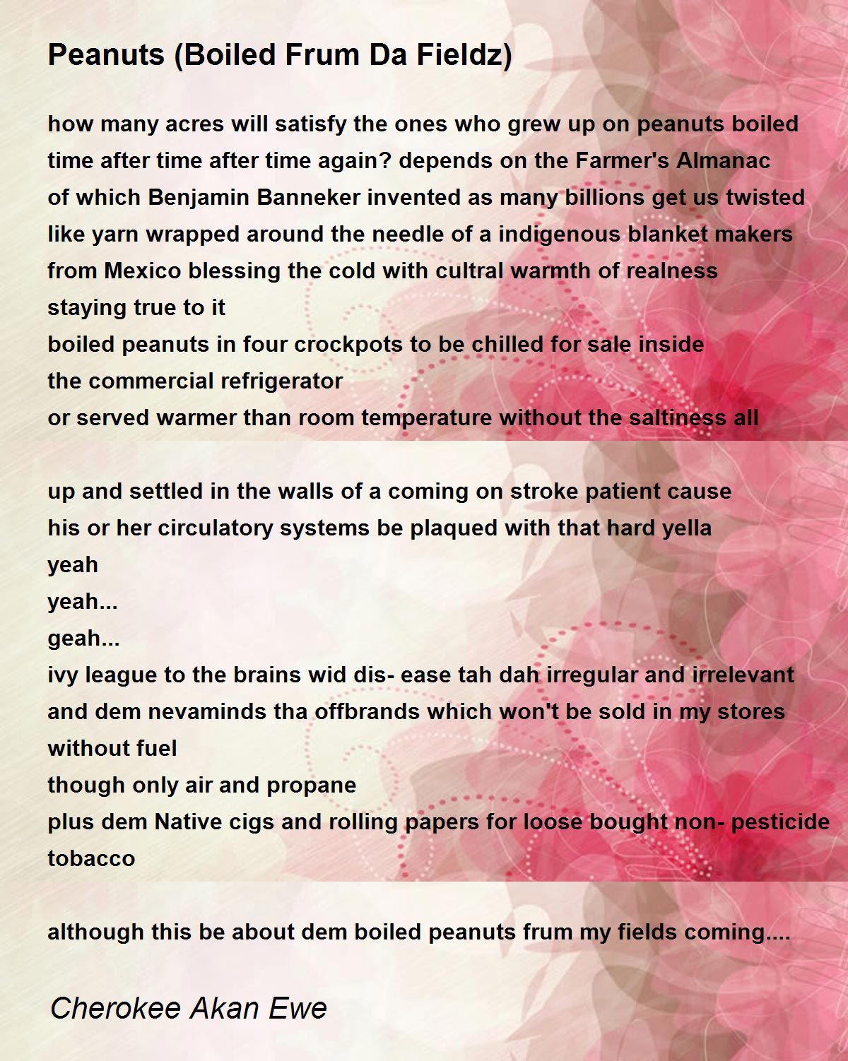 although this be about dem boiled peanuts frum my fields coming....