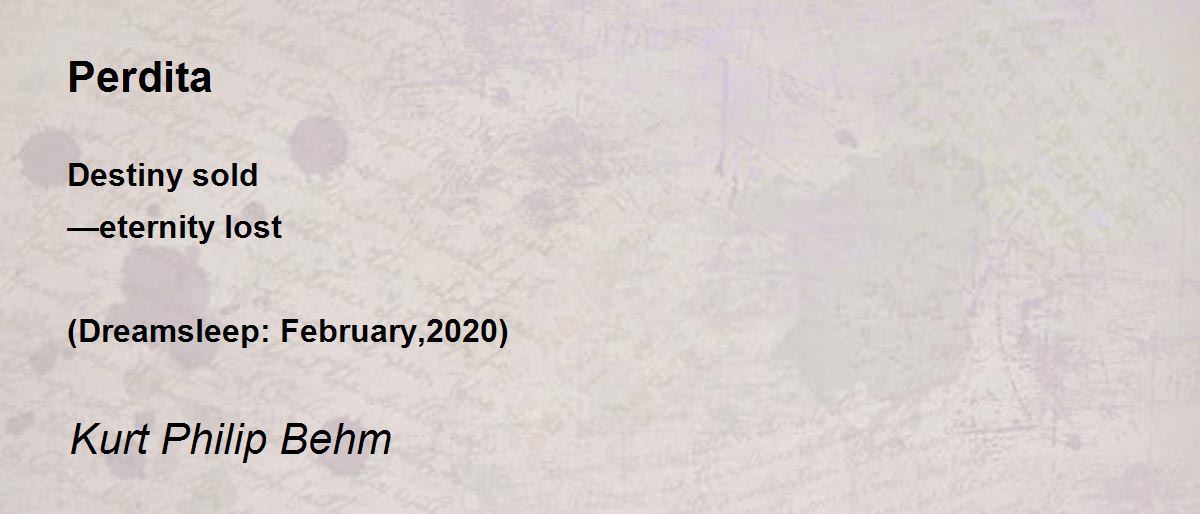 Destiny sold —eternity lost (Dreamsleep: February,2020)