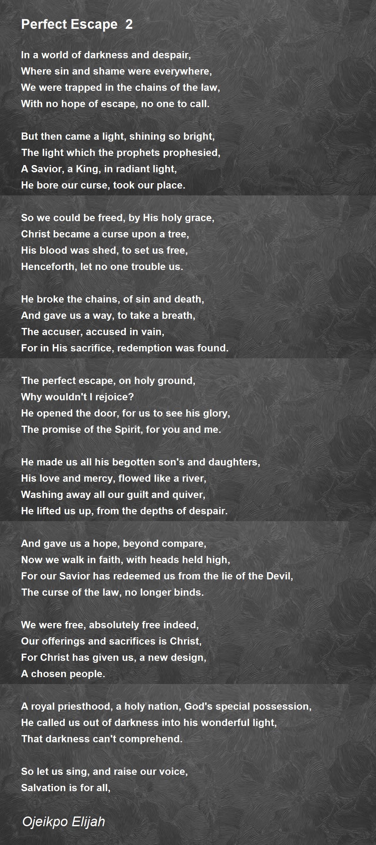 For Christ, the perfect escape, has set us free, now and forever,