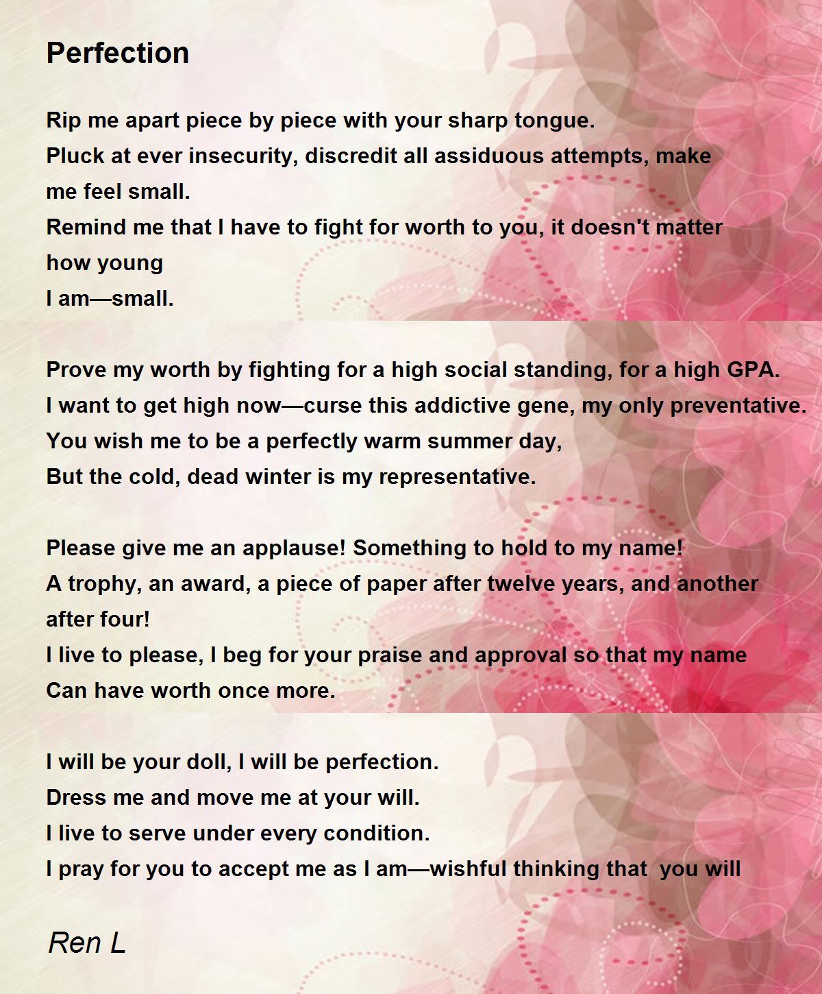 I pray for you to accept me as I am—wishful thinking that you will