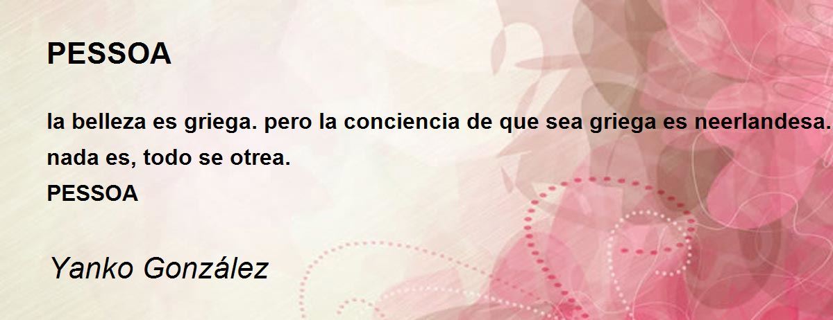 la belleza es griega. pero la conciencia de que sea griega es neerlandesa. nada es, todo se otrea. PESSOA