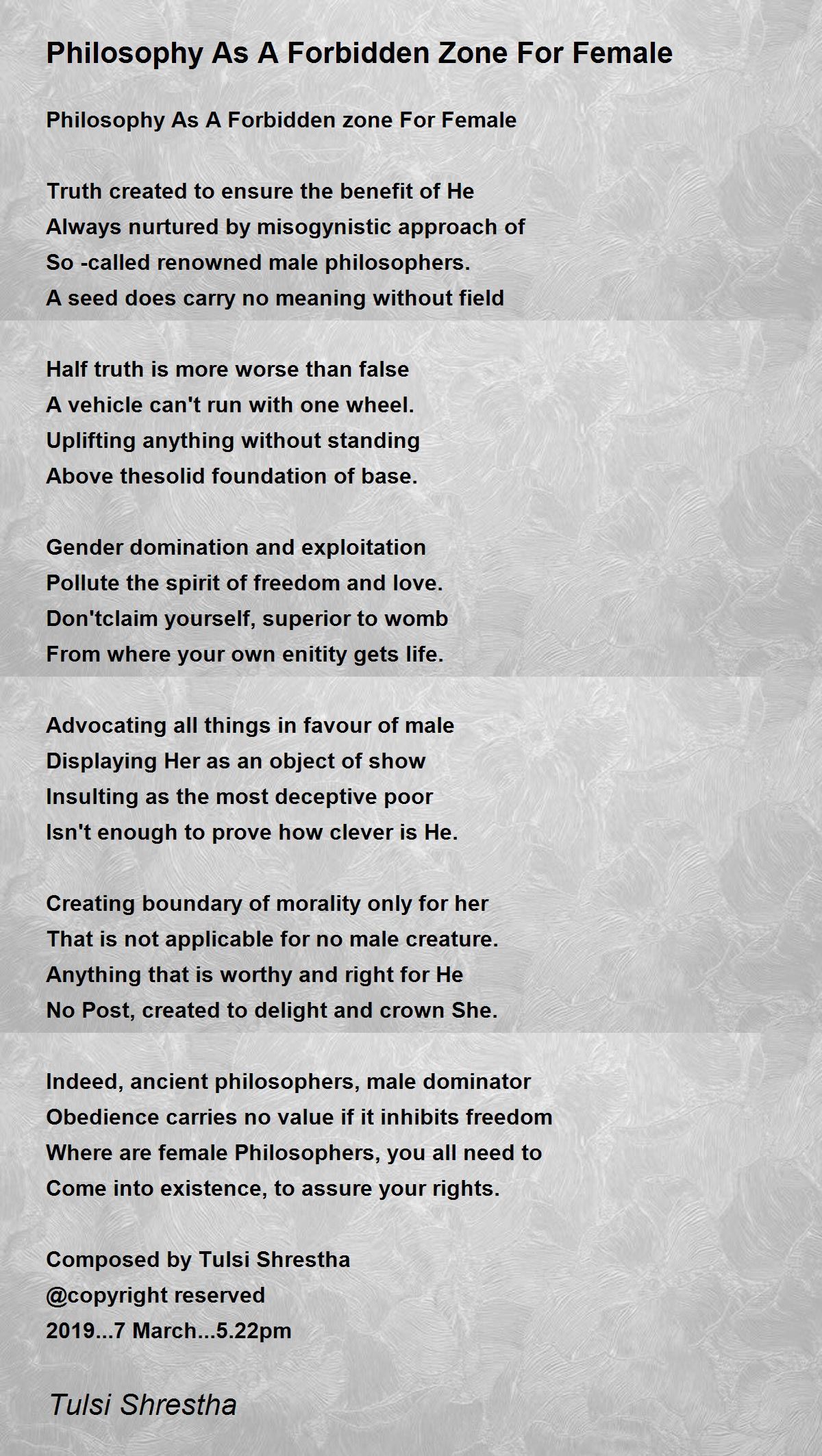 Philosophy As A Forbidden zone For Female