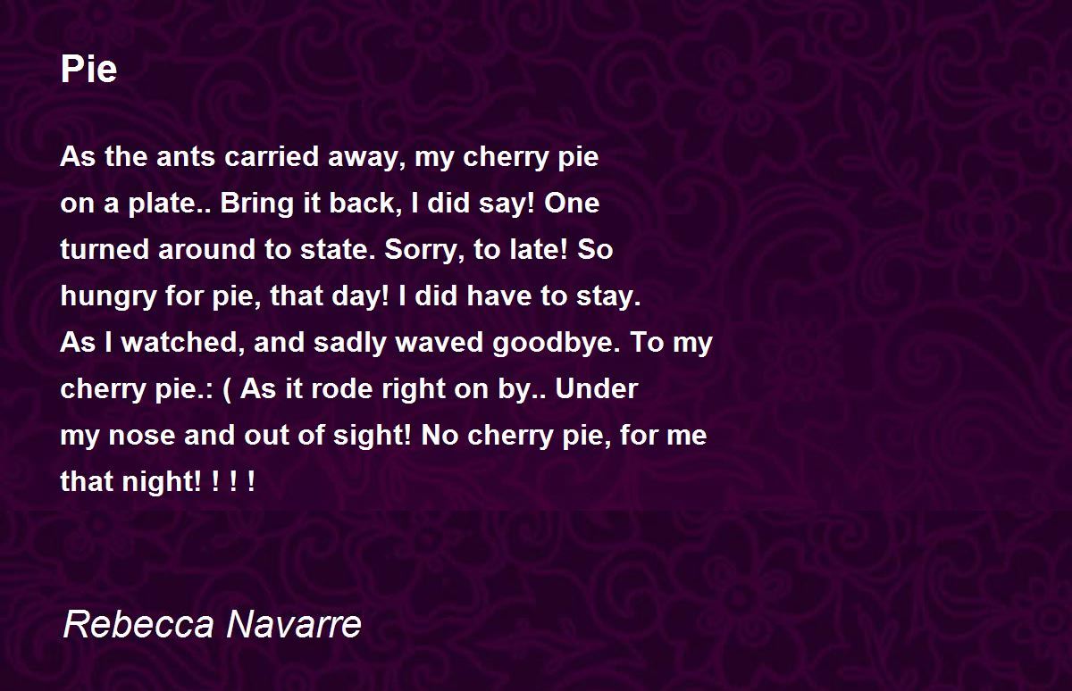 A lovely and amazingly funny poem. Enjoyed reading it. I love cherry pie too!