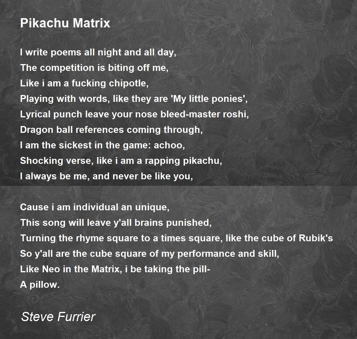 Shocking verse, like i am a rapping pikachu,