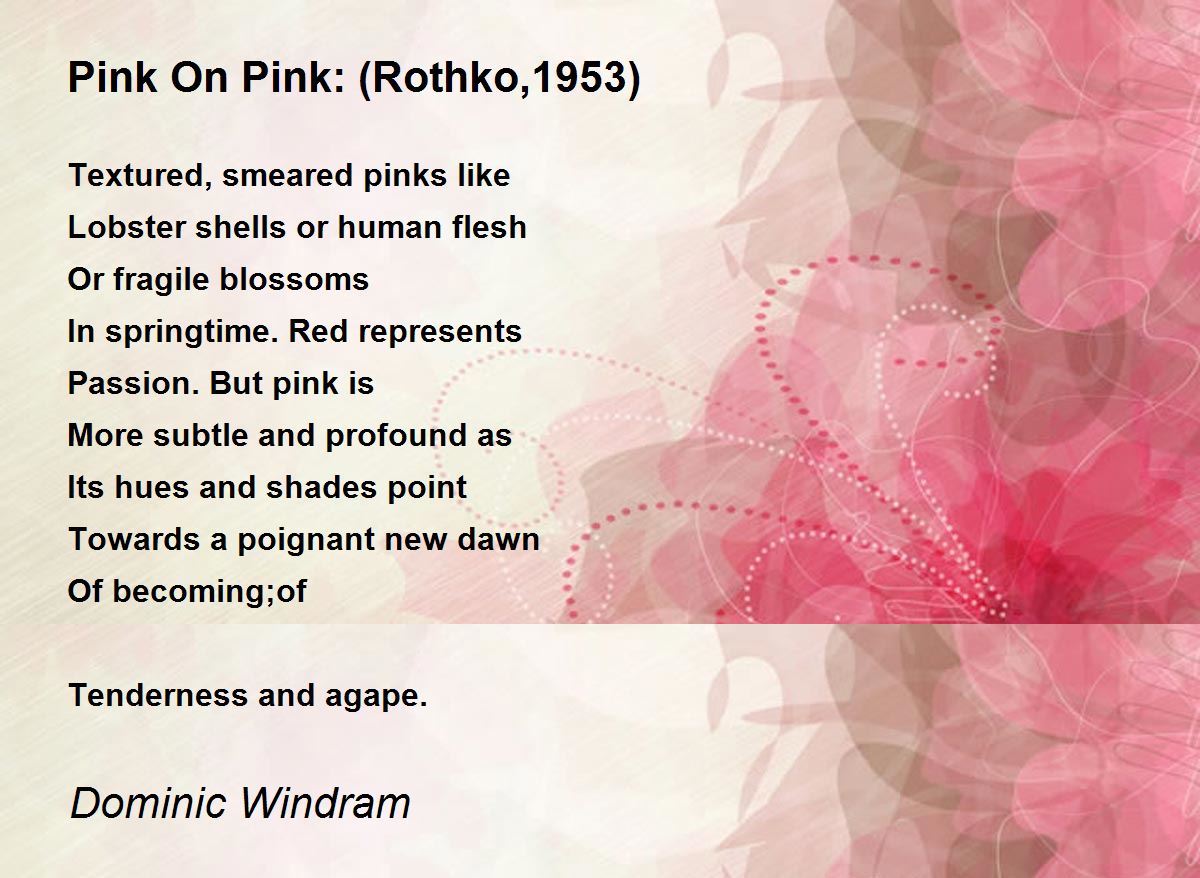 Art and colour clash and behold the result. Like a meeting of minds. And pink Dominic as we know can be interpreted many different ways in poetry, leading down many welcome avenues. To inspire us and reveal its hidden strengths. Five stars and take care good sir.
