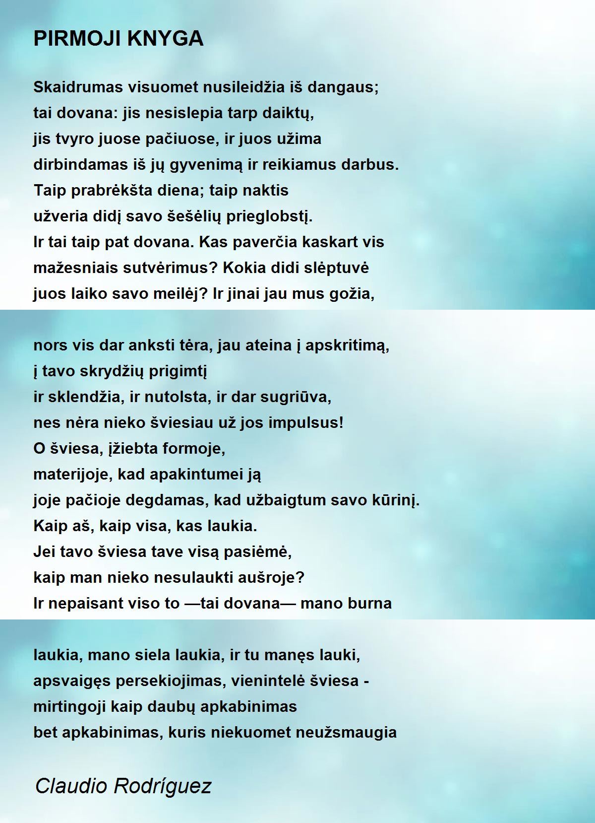 Skaidrumas visuomet nusileidžia iš dangaus;