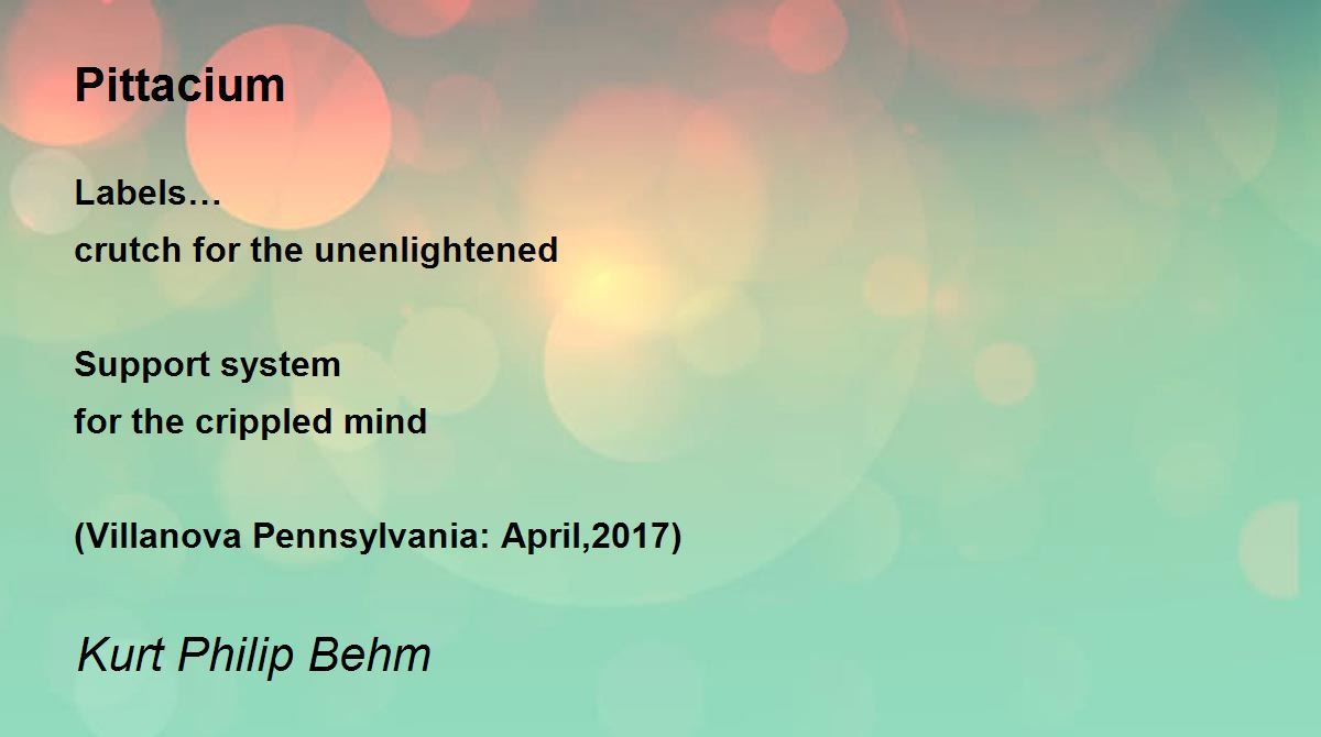 Labels… crutch for the unenlightened Support system for the crippled mind (Villanova Pennsylvania: April,2017)
