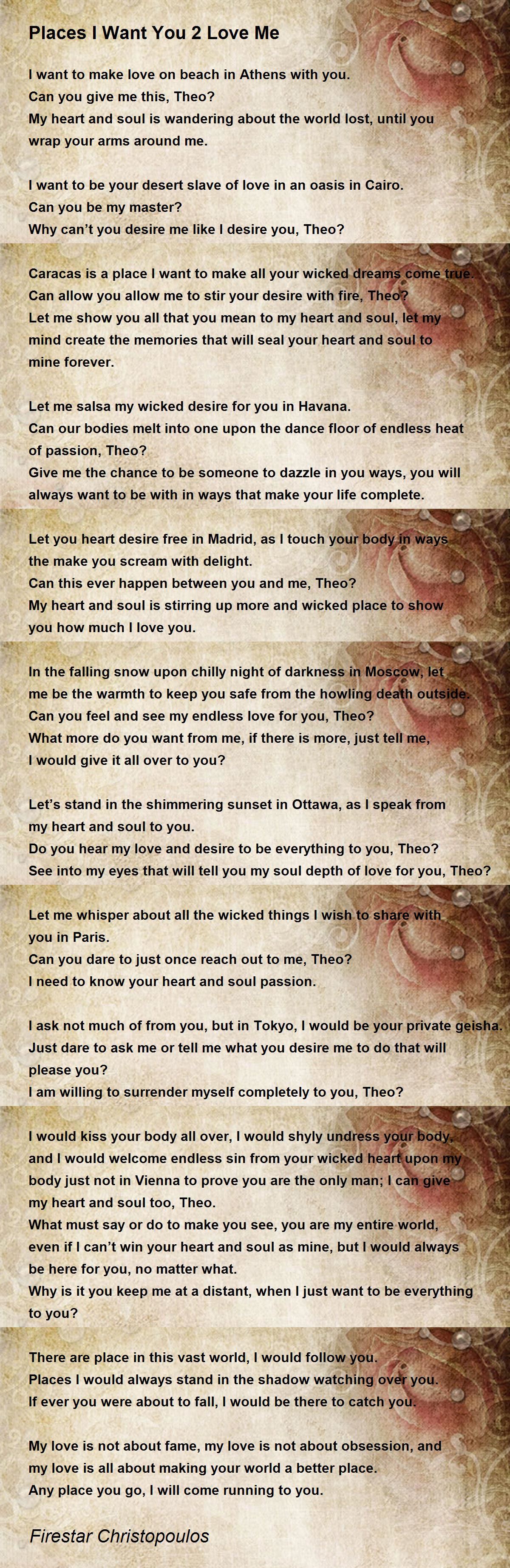 I would kiss your body all over, I would shyly undress your body, and I would welcome endless sin from your wicked heart upon my body just not in Vienna to prove you are the only man; I can give my heart and soul too, Theo.