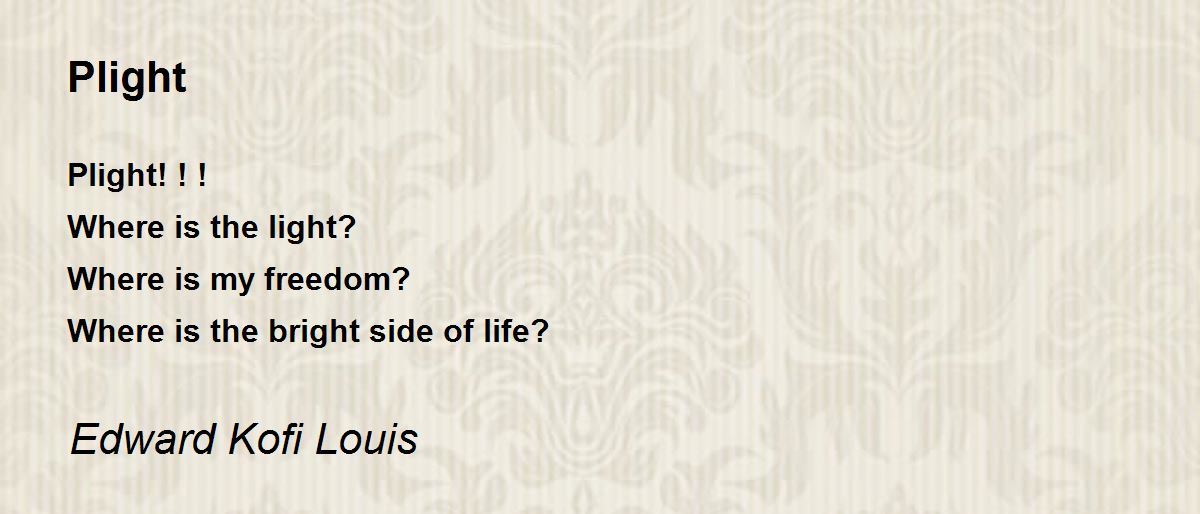 Plight! ! ! Where is the light? Where is my freedom? Where is the bright side of life?