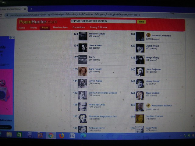 We have read poems in sites, best is noted here,