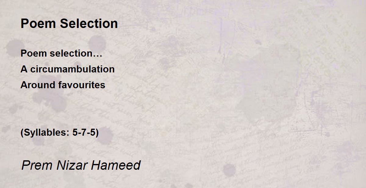 Poem selection… A circumambulation Around favourites (Syllables: 5-7-5)